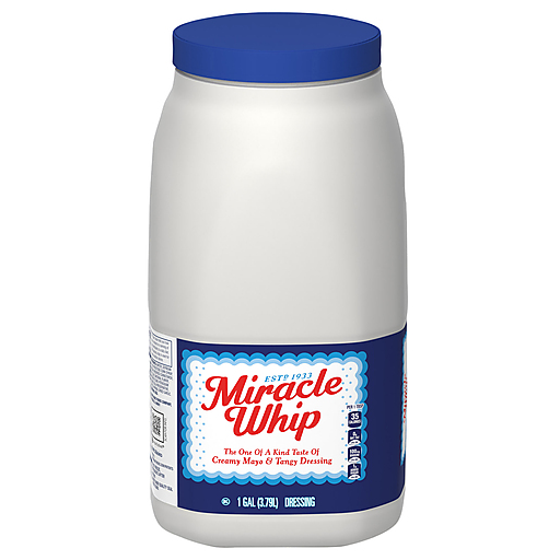 Miracle Whip Original Dressing is a tangy and sweet spread with a creamy texture. Made with a blend of soybean oil, vinegar, water, sugar and spices, it has a distinctive flavor that sets it apart from mayonnaise. It's perfect for adding zing to sandwiches, salads and dips, and is a versatile ingredient in many recipes. With its unique taste and creamy consistency, Miracle Whip Original Dressing is a beloved condiment that has been a staple in kitchens for decades. Miracle Whip Original Dressing delivers the perfect fusion of flavors with a bold, tangy taste that is unlike anything else you've ever had. As a spread, Miracle Whip is known for kicking sandwiches up a notch. Try out our versatile ingredient that can be used to make tangy salad dressings and even chocolate cakes for a finger-licking adventure. Miracle Whip original spread contains 3.5 grams of fat and 40 calories per single-tablespoon serving. Try some Miracle Whip coleslaw at your next summer grilling event or blend in some honey and mustard to use it as a dipping sauce for all your favorite grilling foods. You'll feel great about using Miracle Whip at your Fourth of July and Labor Day BBQs. Each resealable container should be stored in the refrigerator after opening.